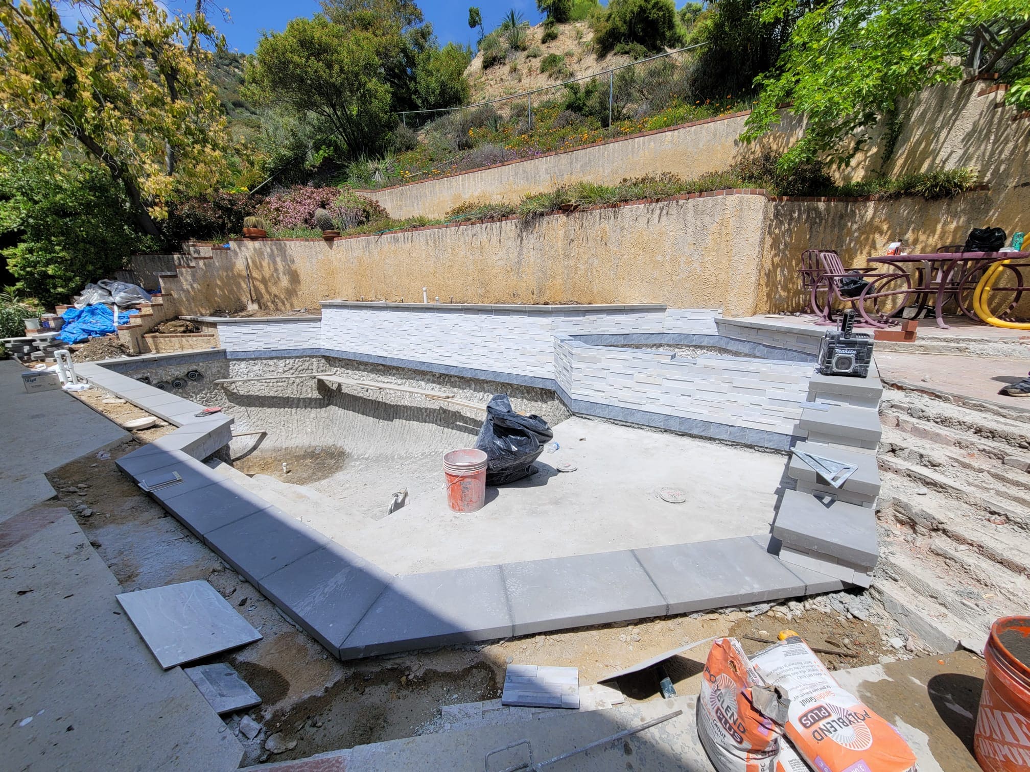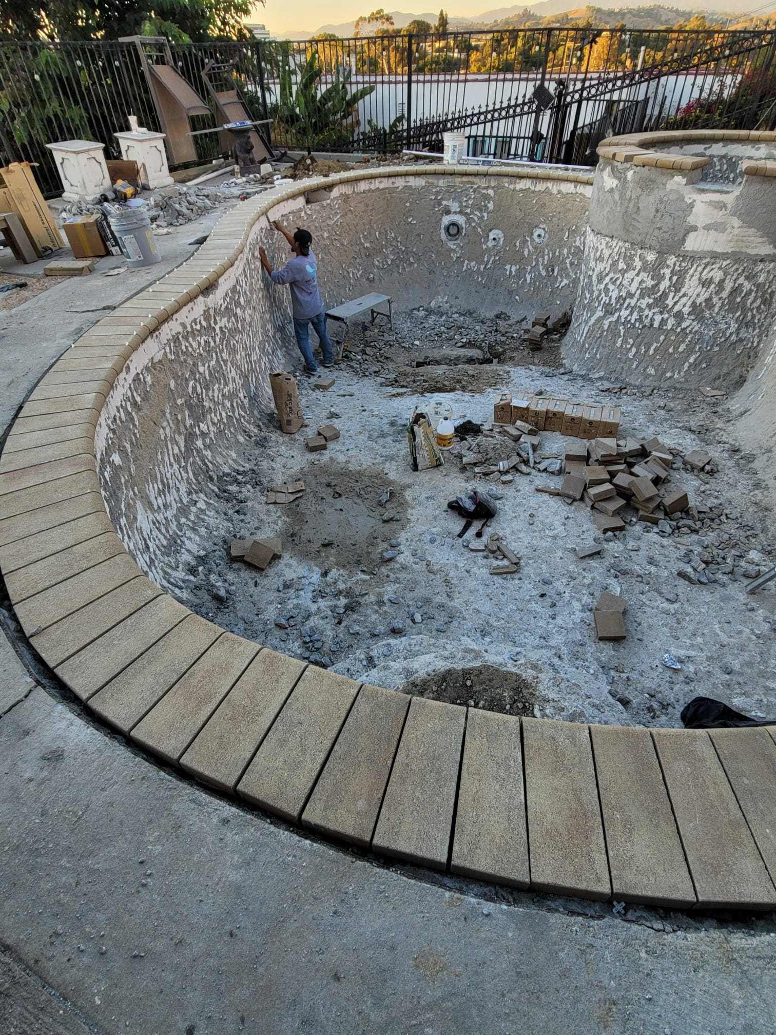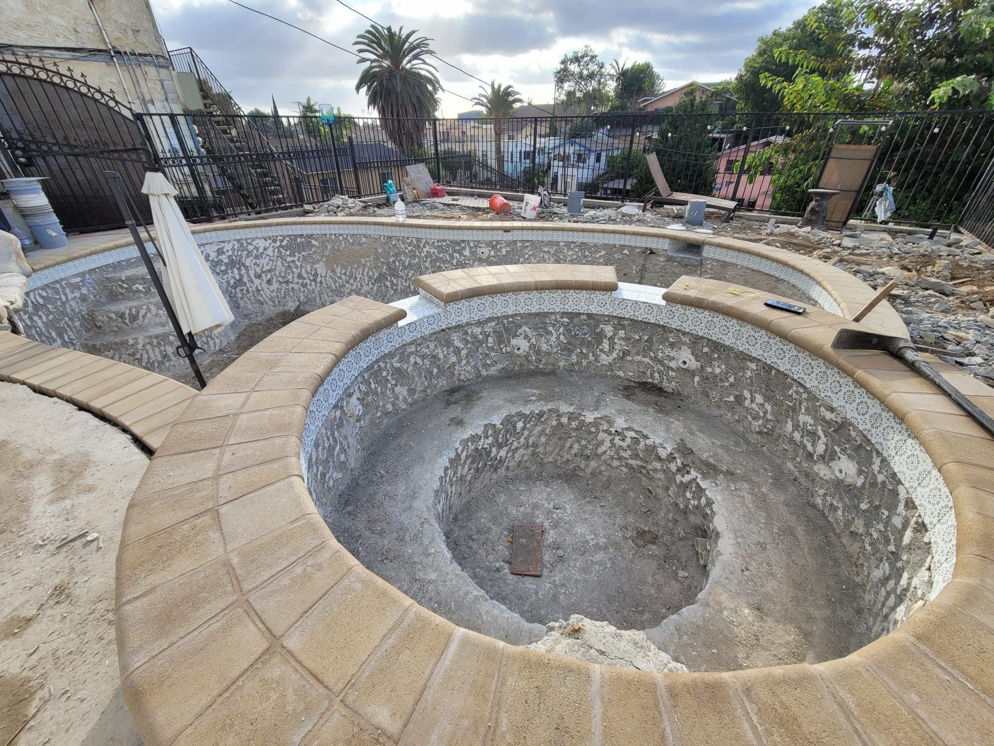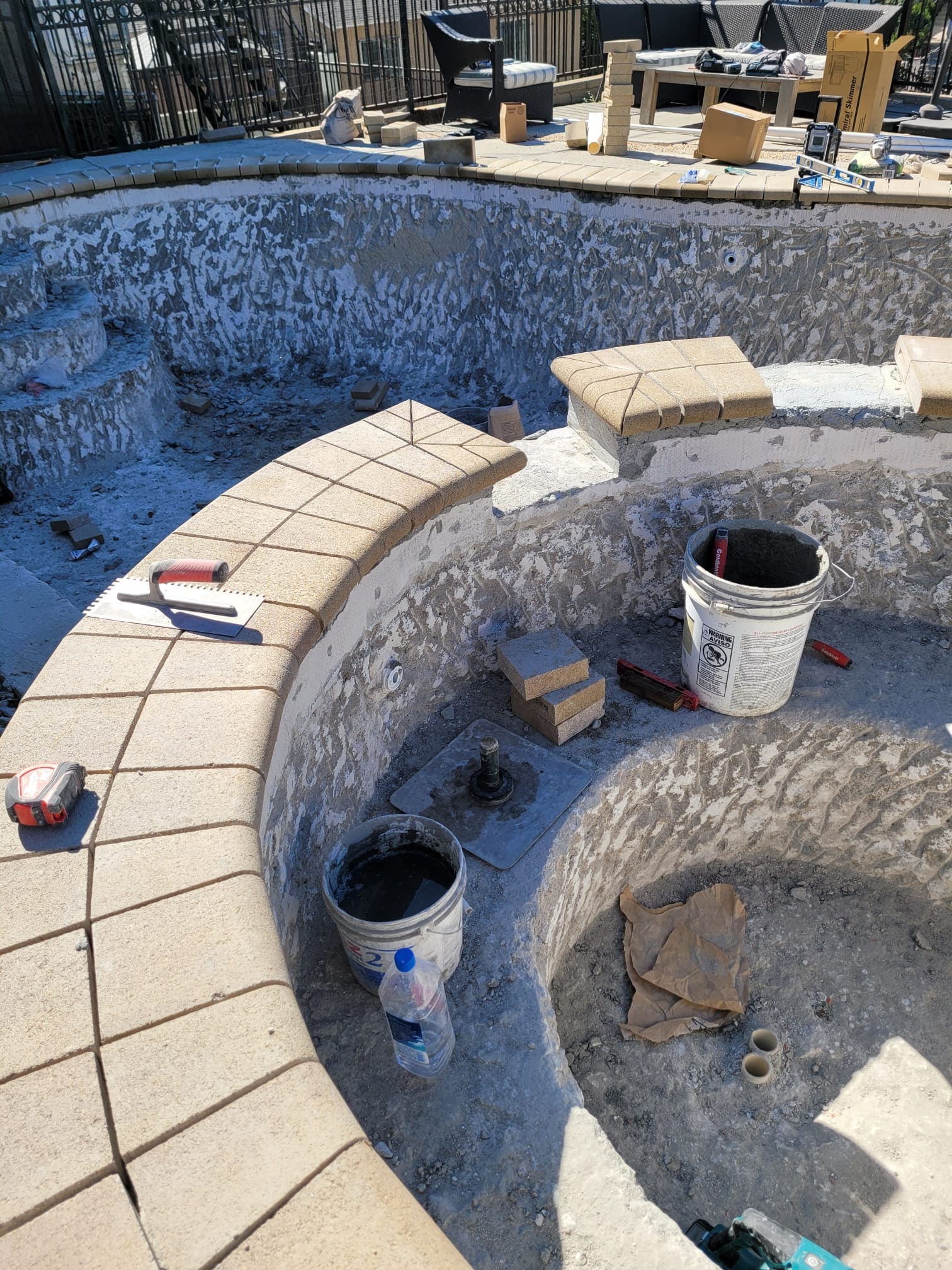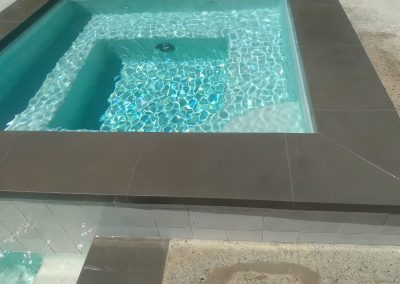 We can install: new tile, new cooping, new deck-o-seal, new plaster or Pebble finsh.